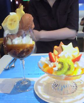 田舎者のReiを達人某さま(山羊好きさん、写真で腕組みしてはる方)が案内してくださり、パフェに行って参りました〜。